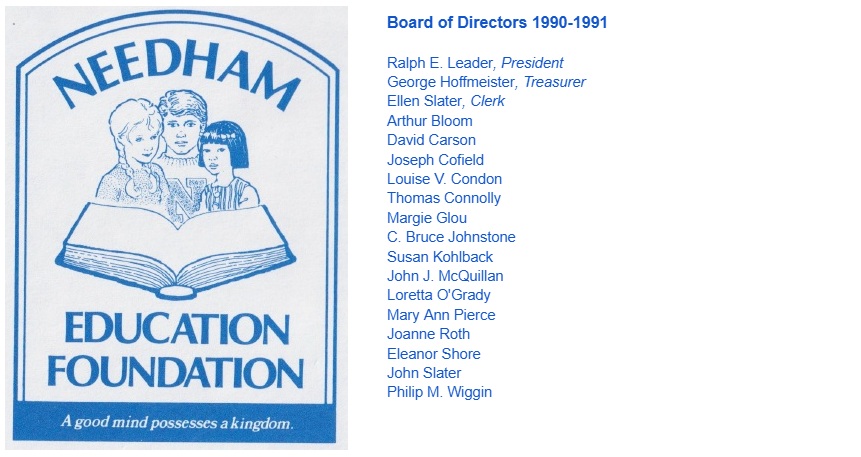 The original NEF logo from 1990, designed by Louise Condon and Bob Larsen, and the list of original board members.