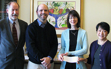 In honor of its 100th birthday, Wellesley Bank gave the Needham Education Foundation (NEF) a gift of $2,000 to support its mission of encouraging innovation in public schools. Pictured from left to right: John W. Wescott, Vice President of Information Technology, Wellesley Bank, Steve Mock, NEF Co-President; Pamela Rosin, NEF Co-President; Alice C. Lee, Assistant Vice President & Branch Manager, Wellesley Bank.